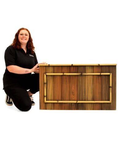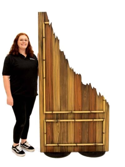 Art Deco & Glamour installs add metallic shine and luxe style. Showcase the Art Deco Backdrop – Black & Gold or the Ribbed Velvet Wall Panel – Teal Velvet. Layer in Shimmer Panel – Iridescent or Vintage Chevron Wall Panel for high-impact photo zones. Pair these flats with Art Deco Fence Panels and discover matching elements under Fences.