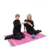 Bohemian Rag Rug to hire. This is a Mexican style Rag Rug, featuring plain panels in pink with colourful striped panels.