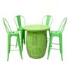 Coloured Rustic Barrel Poseur Table + Metal Stools (Green)