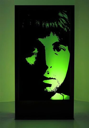 Lit silhoutte panel depicting one of the Fab Four, George Harrison. Actual lighting colour may vary from that shown. All Parcan lights have a 1m lead and it is the responsibility of the client to provide extension leads if longer leads are required.