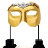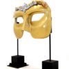 Giant Venetian Eye Mask for hire. Sculpted fully 3D Venetian Eye Mask in gold finish with beautiful soft furnished edges. This prop can be freestanding as pictured or can be suspended. When standing as pictured, this prop stands at over 2 metres tall, giving it spectacular presence at your Venetian themed event. When standing as pictured, this prop stands at over 2 metres tall, giving it spectacular presence at your Venetian themed event.