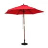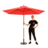 Hexagonal Parasol in Red to hire. This beautiful bright red parasol will definitely provide a splash of colour that will brighten up your event or party. Hexagonal in shape and 2m wide this is a quality product, constructed with a heavy duty wooden frame and a water resistant canopy. Simply pull the cord, place the pin in the hole and your parasol is ready for your event! The parasol is supplied with a heavy duty base.