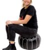 Moroccan Leather Pouffe – Black