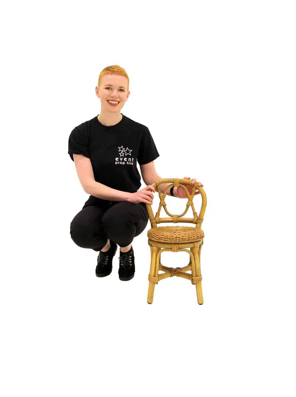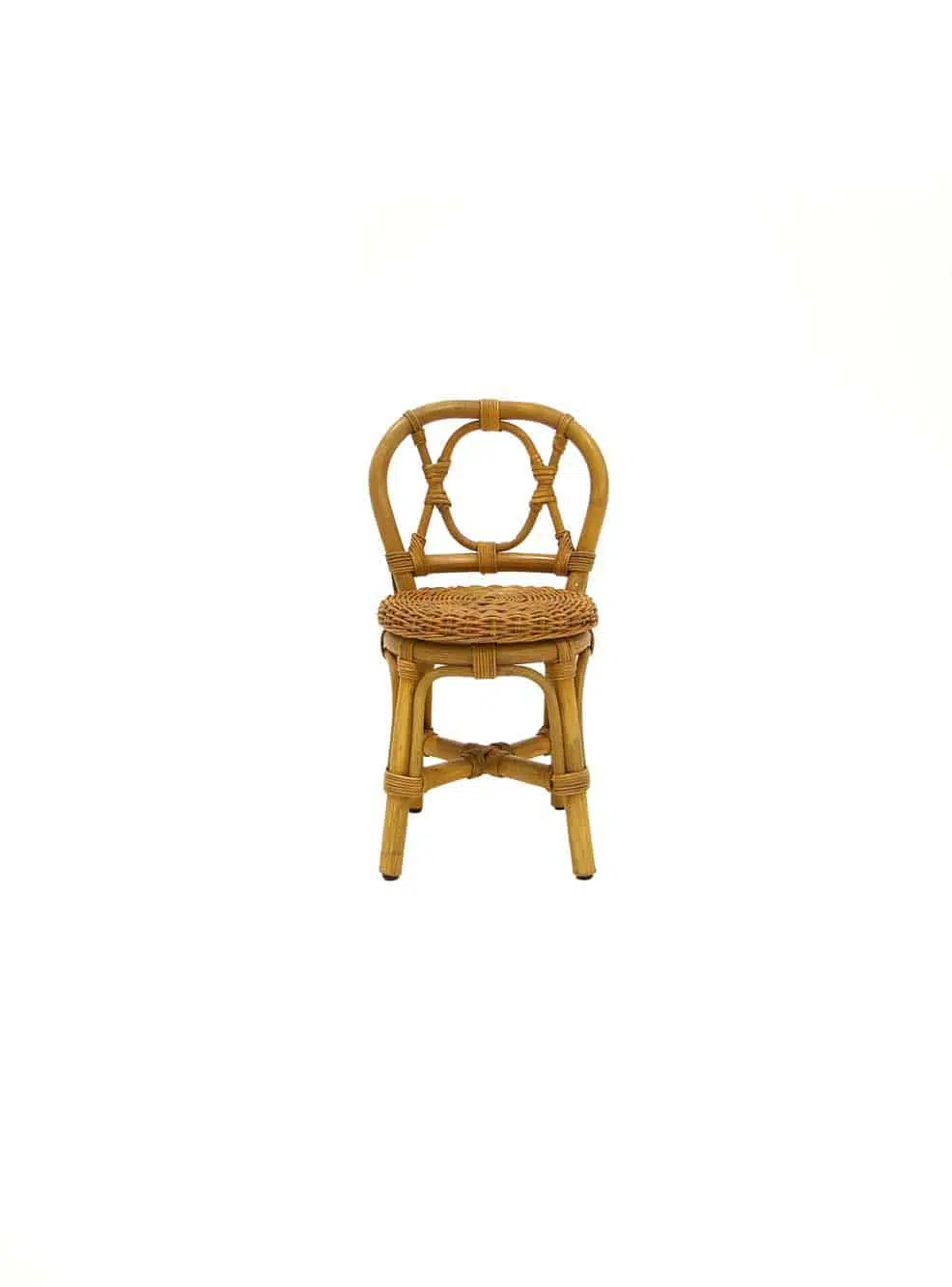 Children’s rattan chair for hire. Beautifully crafted child’s rattan chair, in natural rattan with woven circular seat detail.