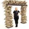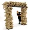 Sandbag Entranceway to hire. This prop consists of lightweight filled hessian bags made to look like filled sandbags; easy to set-up at your event. This entranceway is perfect for any 1940’s or wartime themed event party. You can also hire sandbag columns on their own.