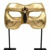 Venetian Gold Eye Mask to hire. This fantastically detailed mask is perfect prop hire for any Venetian ย  or masked ball themed event and is freestanding.