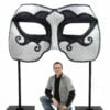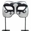 Venetian Silver Eye Mask to hire. This fantastically detailed mask is perfect prop hire for any Venetian ย  or masked ball themed event and is freestanding.