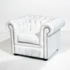 White Leather Club Armchair to hire. This furniture to hire is perfect for any break out area where you want to add a cool degree of class & sophistication. This prop to hire is part of a matching set including Chesterfield Sofas & Cube Seating (Available seperately).