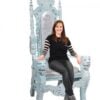White Winter Throne ย to hire. Sit back in style at your Winter, Narnia or Ice themed event with this beautiful ice white throne. Intricately designed, this throne would look amazing at your event or party.