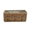 Wicker Basket With Zinc Planter for hire. These rectangular baskets have a internal zinc lining and can be used for holding plants or other props.