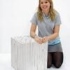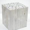Wood Cube Table furniture to hire. This stylish solid wood table is constructed from a number of vertically orientated logs of differing sizes and stained in a sleek white to give a simple yet elegant furniture solution.