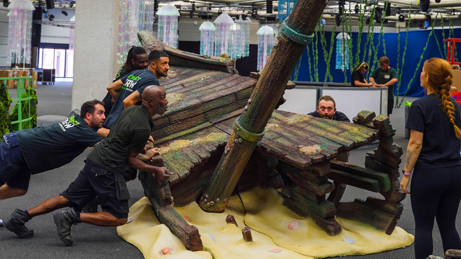 - A broken lift during de-rig, which meant manual transport of heavy props via staircases