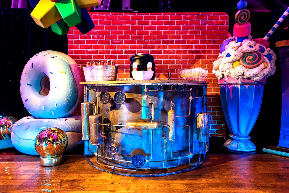 Welcome to the Chocolate Factory Event Ideas Gallery, where pure imagination meets immersive styling. Our team transformed blank spaces into a whimsical candy world—complete with candy floss trees, giant mushroom clusters and bubble machines that delight the senses.