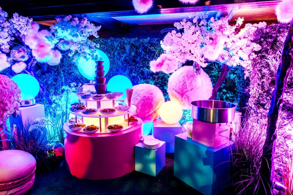 The Space was filled with fantastical touches – from candy floss trees and giant globe lights to bubble machines and illuminated light box illusions, that played tricks on the eye.