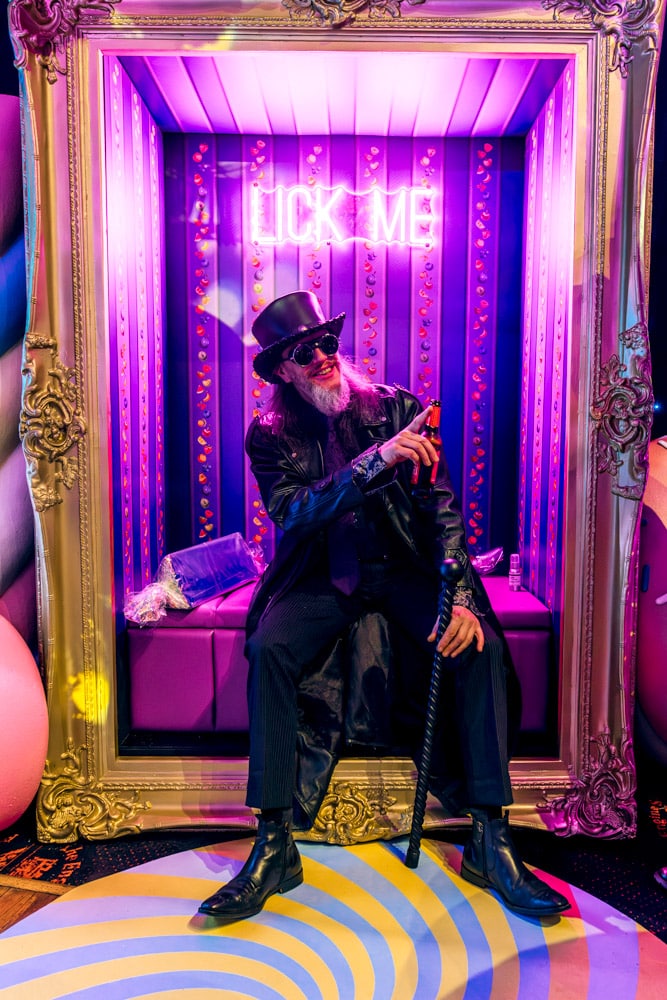 A standout moment? The fantastic “Lick Me” framed seat provided the perfect photo opportunity and a playful nod to the theme.