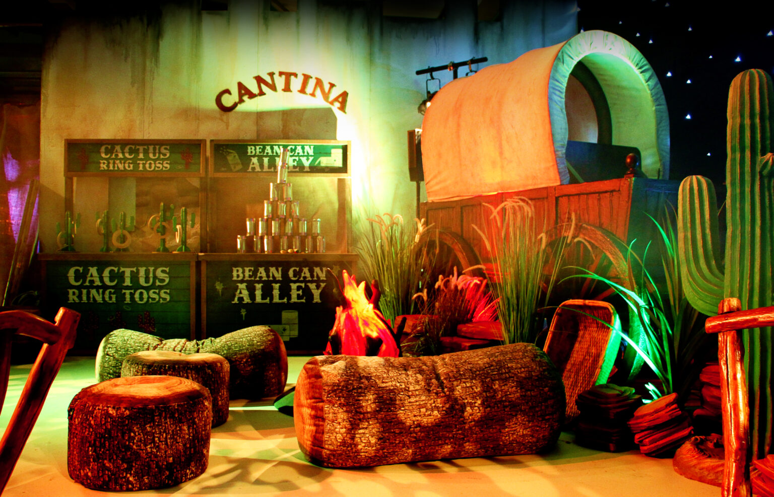 The scene was set with eagle-topped signs, authentic saloon fronts, and charming Western store facades. Standout features like our striking pioneer wagon and giant cowboy boots brought the wow factor and helped set the tone for the whole experience.
