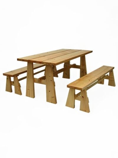 The event furniture in this theme blends practicality with personality — think pallet seating, hay bales, reclaimed wood benches, and relaxed chill-out zones with rugs, cushions, and pouffes. Add festival bars, poseur tables, and mix-and-match seating options for flexible, sociable layouts. The mix of colour, texture, and informal styling helps set the tone for relaxed fun.