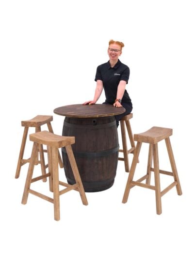 Create cosy lounges with log burner fireplaces, soft faux fur beanbags, and rustic stools. Accent with cowhide armchairs, reindeer hides, and festoon lighting. For larger gatherings, use wooden trestle tables, barrel seating sets, or the Après Ski Bar for a social, festive atmosphere.