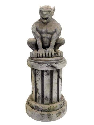 Complement the scene with stone poseur tables, creeping foliage, and spooky lighting like uplighters, wall washers, and dancing flame candles. For a final touch, place gargoyles, ghosts with chains, or a growling wolf to animate the space.