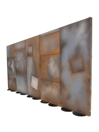 Futuristic decor for hire brings a sleek, cutting-edge look to your events. Our collection features industrial metal-effect backdrops, modular concrete walls, and pipework furniture. These pieces create the perfect foundation for sci-fi, cyberpunk, and space-themed styling.