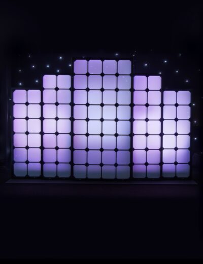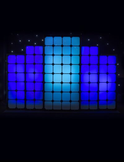 Art Deco & Illuminated flats shine with metallic drama. Showcase the Art Deco Backdrop – Black & Gold (6 m × 2.7 m) or the illuminated Carnival Backdrop for night-time splendour. Layer in the Black & Gold Art Deco Starburst or Black & White Illuminated Starburst Backdrop to frame stages or VIP lounges. For a subtler shimmer, the Square Backdrop – Shimmer (Blue) creates iridescent moods.