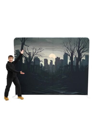Discover UK Stretch Fabric Backdrops rental, UK Stretch Fabric Backdrops (pipe frame) hire, props for hire, and event furniture rental. From Beach Palm Trees to Haunted House scenes, our stretch-fabric backdrops deliver vibrant, double-sided designs for unforgettable events.