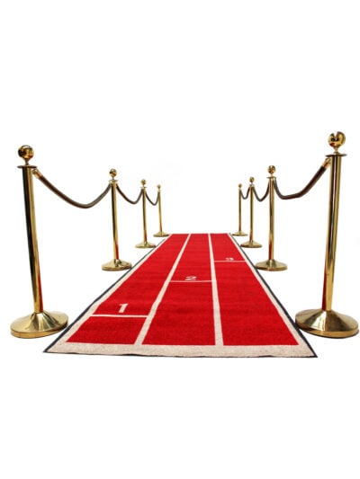 Carpeted & Luxe Runners add refinement. Choose Running Track Carpet or the sporty Running Track Walkway – Gold Stanchions & Rope for athletic or VIP experiences. For classic elegance, deploy our All Black, Silver, or Brass Rope sections with coordinating Stanchions—available in Salmon, Blue, or Black finishes—to frame Red Carpet or Pink Carpet runners in the Carpet Walkways category.