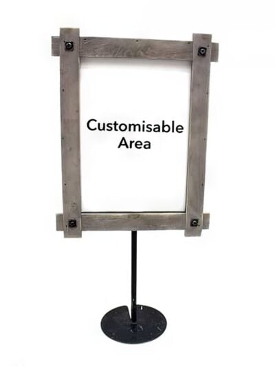 Rustic & Natural Surrounds introduce warmth. Frame prints in the Giant Rustic Driftwood Frame or Large Rustic Frame for countryside events. The Rustic Pallet Frame Sets (small, medium, large) and Customisable Rustic Surround frames add artisan charm. Complement these with Plinths & Columns to create vignette displays.