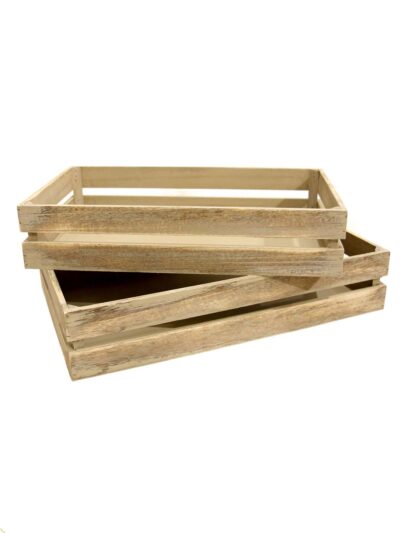 Choose Natural Wooden Crate sets (Set of 3 or Set of 5) for market stalls and farm-to-table activations. The Rustic Open Crate, Small Rustic Crate, Medium and Large Rustic Crates—and the Giant Rustic Crate—build layered displays for produce, merchandise, or floral arrangements. Pair these with our Baskets collection or Prop Scenery’s Carts for cohesive styling.