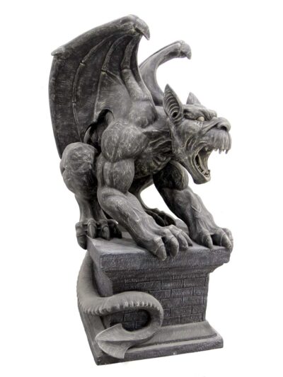 Complement the scene with stone poseur tables, creeping foliage, and spooky lighting like uplighters, wall washers, and dancing flame candles. For a final touch, place gargoyles, ghosts with chains, or a growling wolf to animate the space.