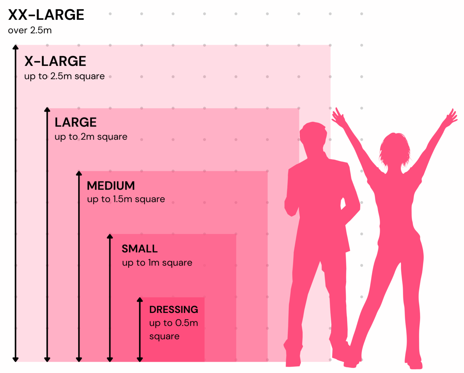 To help you filter our product range by size – each item has been categorised based on its longest dimension.