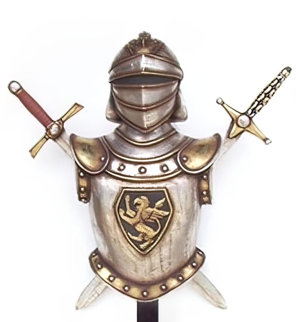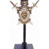 Fantastic 3d metallic 17th century medieval bust with crossed swords. Armour comes mounted on a freestanding plinth. Armour comes mounted on a freestanding plinth.