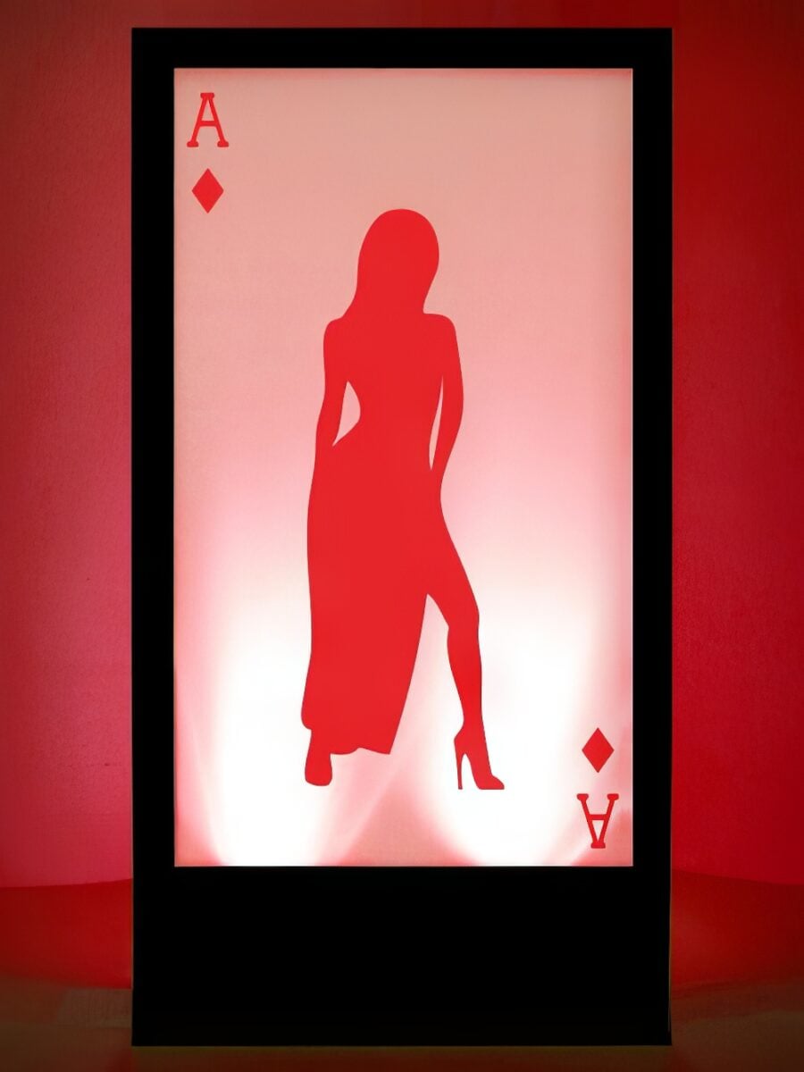 “Ace of Diamonds” secret agent silhouette panel in classic Bond pose. This and all our other Bond 007 props to hire will make great additions to your themed decoration at your 007 bond themed event party night. All our silhouette panels come supplied with lighting. Lighting colour may vary from that shown. All Parcan lights have a 1m lead and it is the responsibility of the client to provide extension leads if longer leads are required.