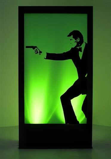 “Ace of hearts” secret agent silhouette panel in classic Bond pose. This and all our other Bond 007 props to hire will make great additions to your themed decoration at your 007 bond themed event party night. All our silhouette panels come supplied with lighting. Lighting colour may vary from that shown. All Parcan lights have a 1m lead and it is the responsibility of the client to provide extension leads if longer leads are required.