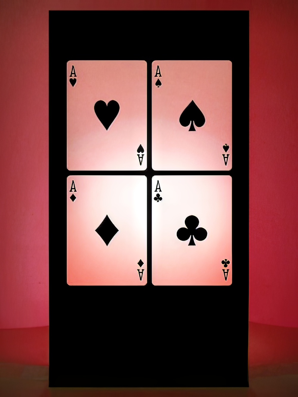 Aces Silhouette Panel for hire. Hold all the aces at your event with this silhouette panel depicting all four Aces from a deck of cards. This panel would look great at any Secret Agent or Casino themed event or party. Please note that the lighting colour may vary from that shown. ย All Parcan lights have a 1m lead and it is the responsibility of the client to provide extension leads if longer leads are required. Finally, ย the price ย quoted includes one supplied light. .