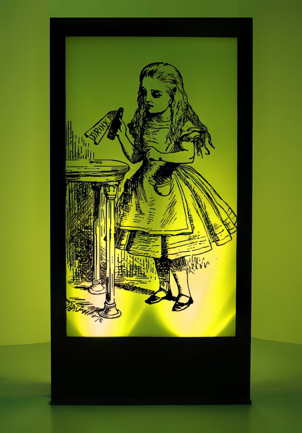Traditional Alice in Wonderland silhouette panel. Alice is pictured here with a mysterious potion labeled ‘Drink’. All lights have a 1m lead and it is the responsibility of the client to provide extension leads if longer leads are required. Price quoted includes one supplied light. We offer a customised version of this product here. We offer a customised version of this product here.