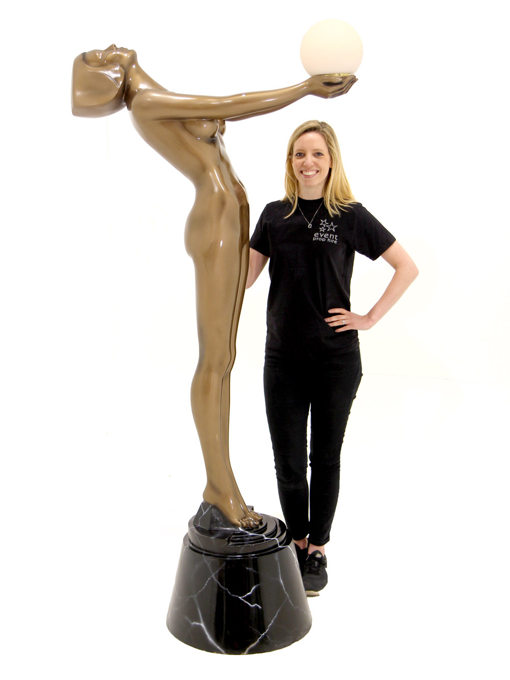 Art Deco Figure to hire. This Art Deco Lady is a beautiful addition to any 1920’s themed event. The orb the figure is holding is a remote controlled LED colour changing light, adding a perfect soft glow to your event. Our Art Deco Statue looks fabulous either side of our Art Deco Entranceway. Add our Gold Carpet Walkway to make this very striking, glamorous 1920’s entranceway. A great option for your guest’s arrival. The Art Deco Figure is a showstopping additional to all Gatsby themed events. A great option for your guest’s arrival. The Art Deco Figure is a showstopping additional to all Gatsby themed events.