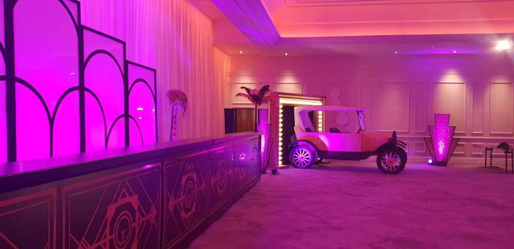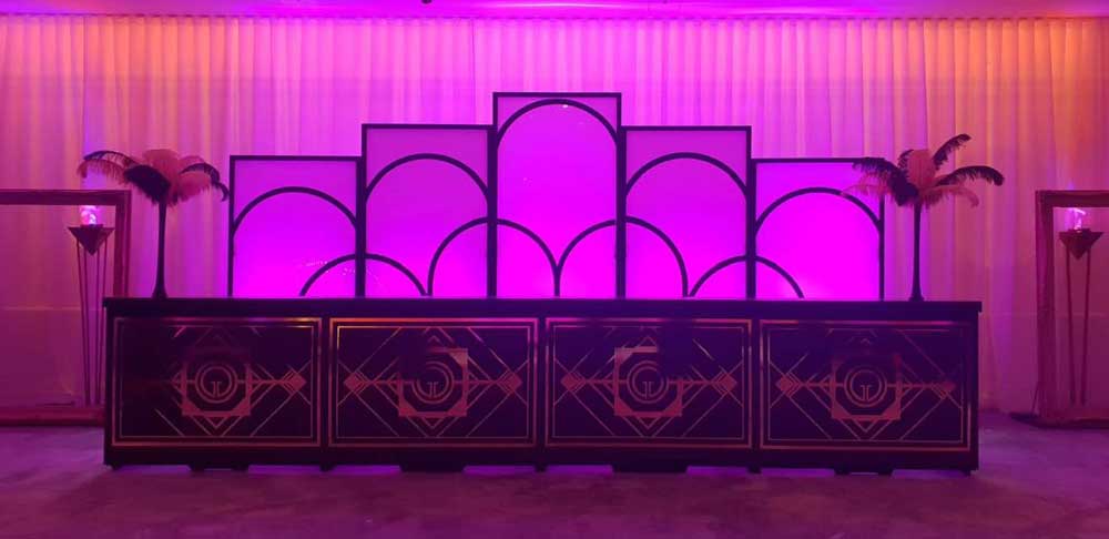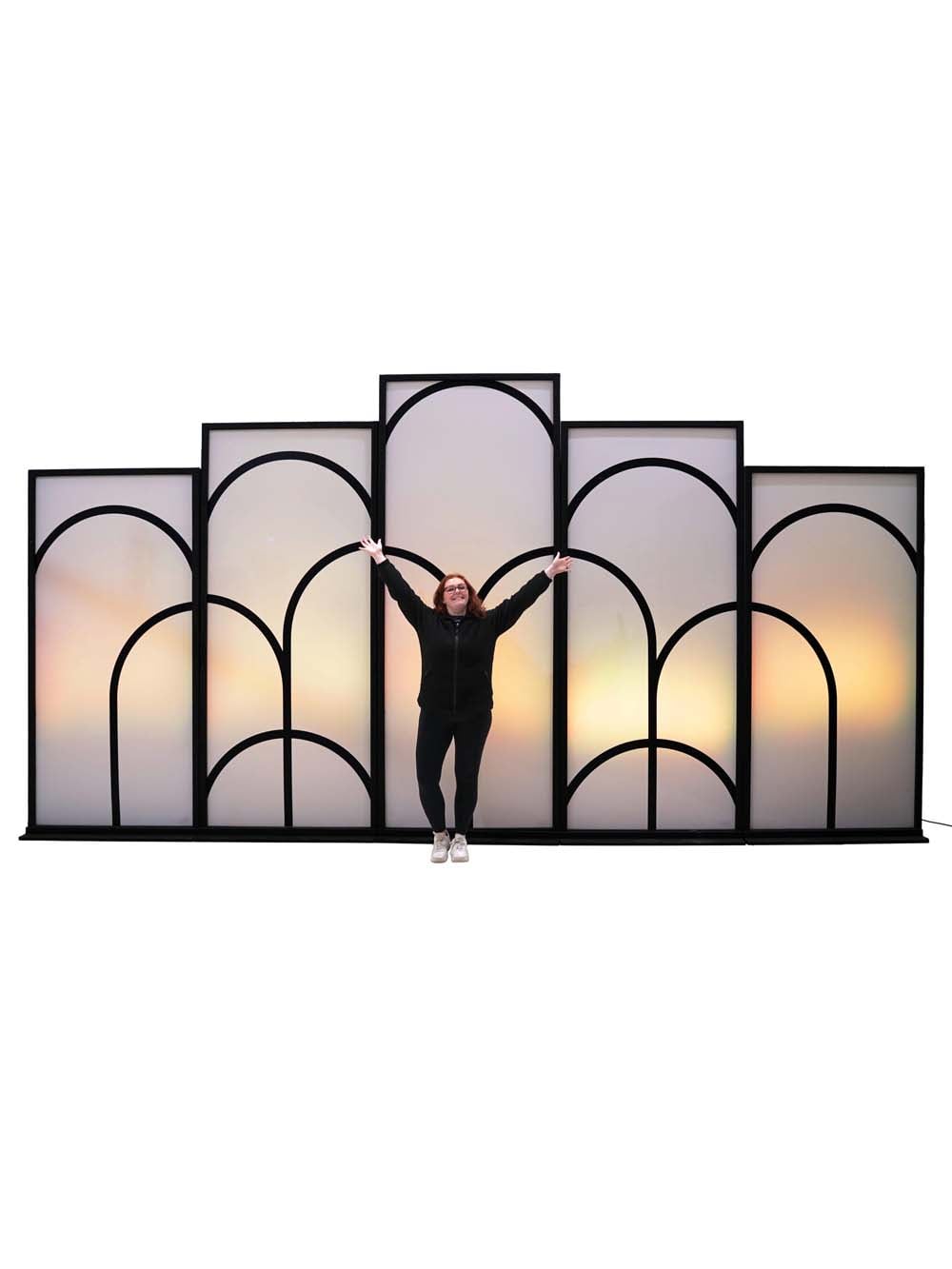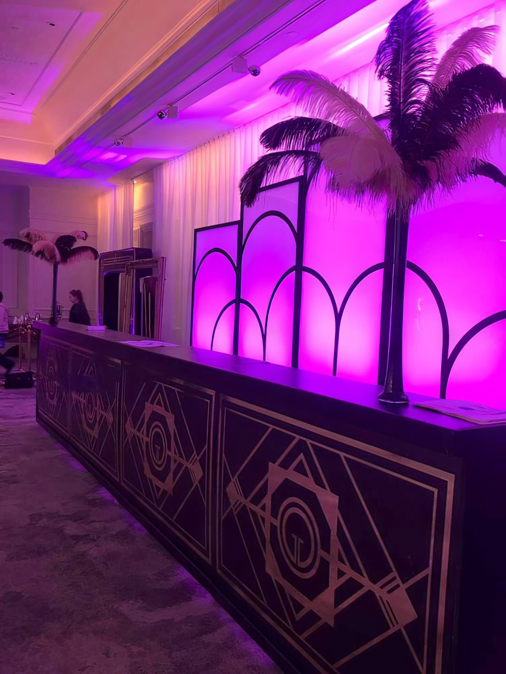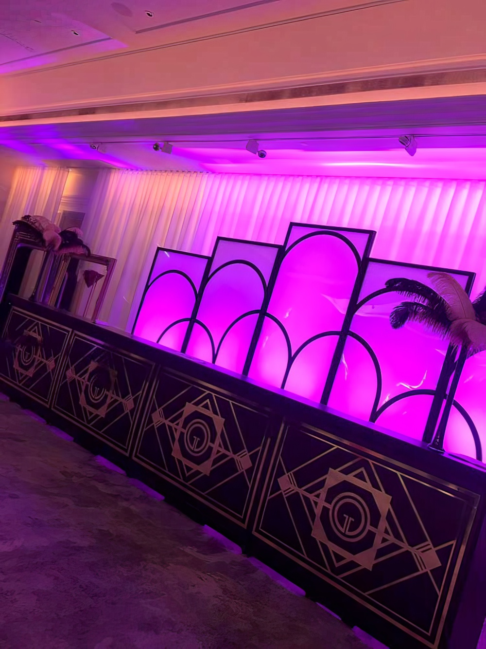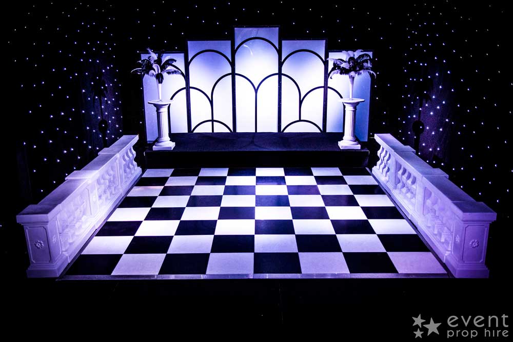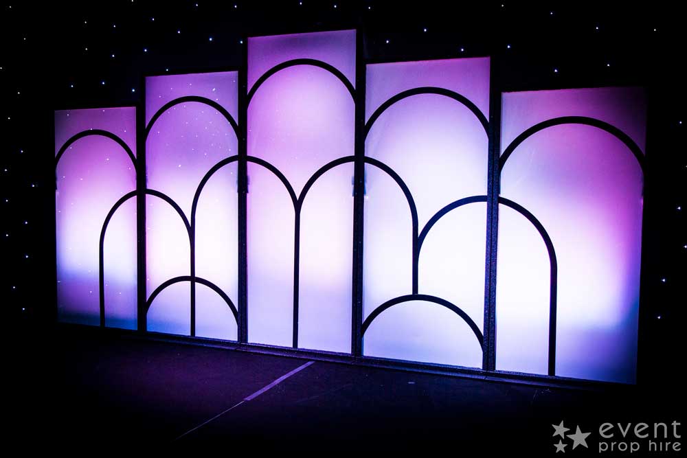 This Art Deco style illuminated backdrop would look fabulous at your 1920’s or Black and White themed event. The backdrop is constructed from opaque acrylic sheets, is free-standing & easily assembled.