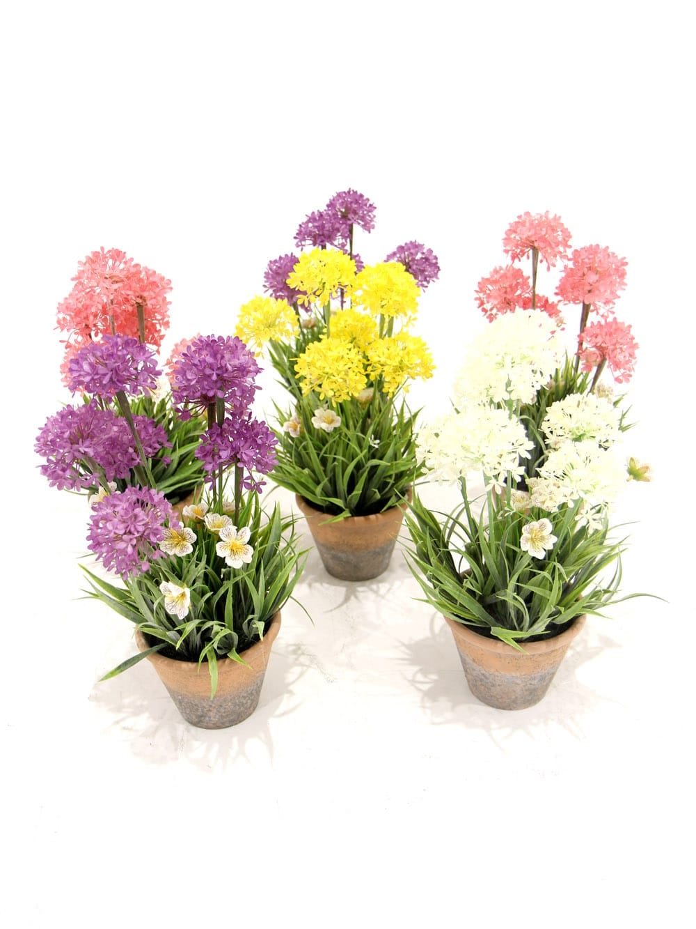 Artificial Potted Allium Flowers (Set of 6 Mixed Colours)