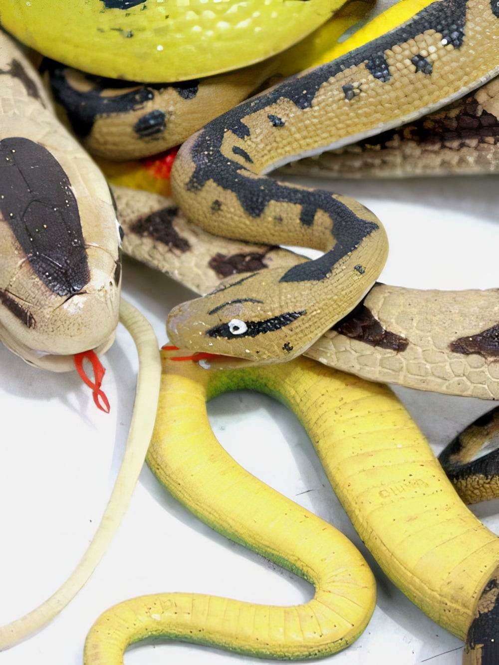 Assorted snakes to hire. Create a creepy scene with some of our realistic snake props. Varying in colour and size up to 500mm, the snakes will really help to set the scene at your jungle or halloween event or party.