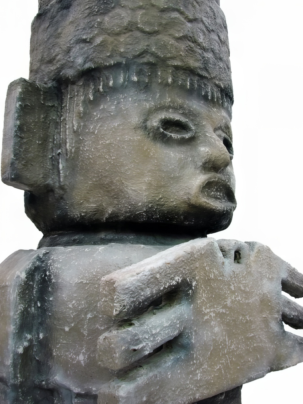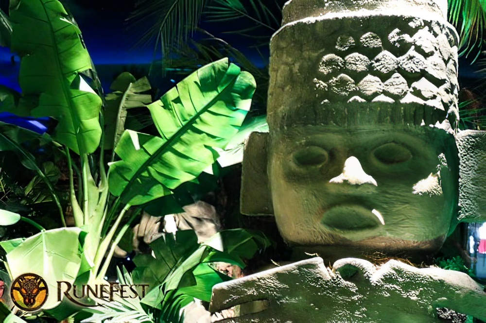 Stone Effect Aztek Statue Prop to hire. This fully 3d prop is perfect for any Jungle or South American themed event party.