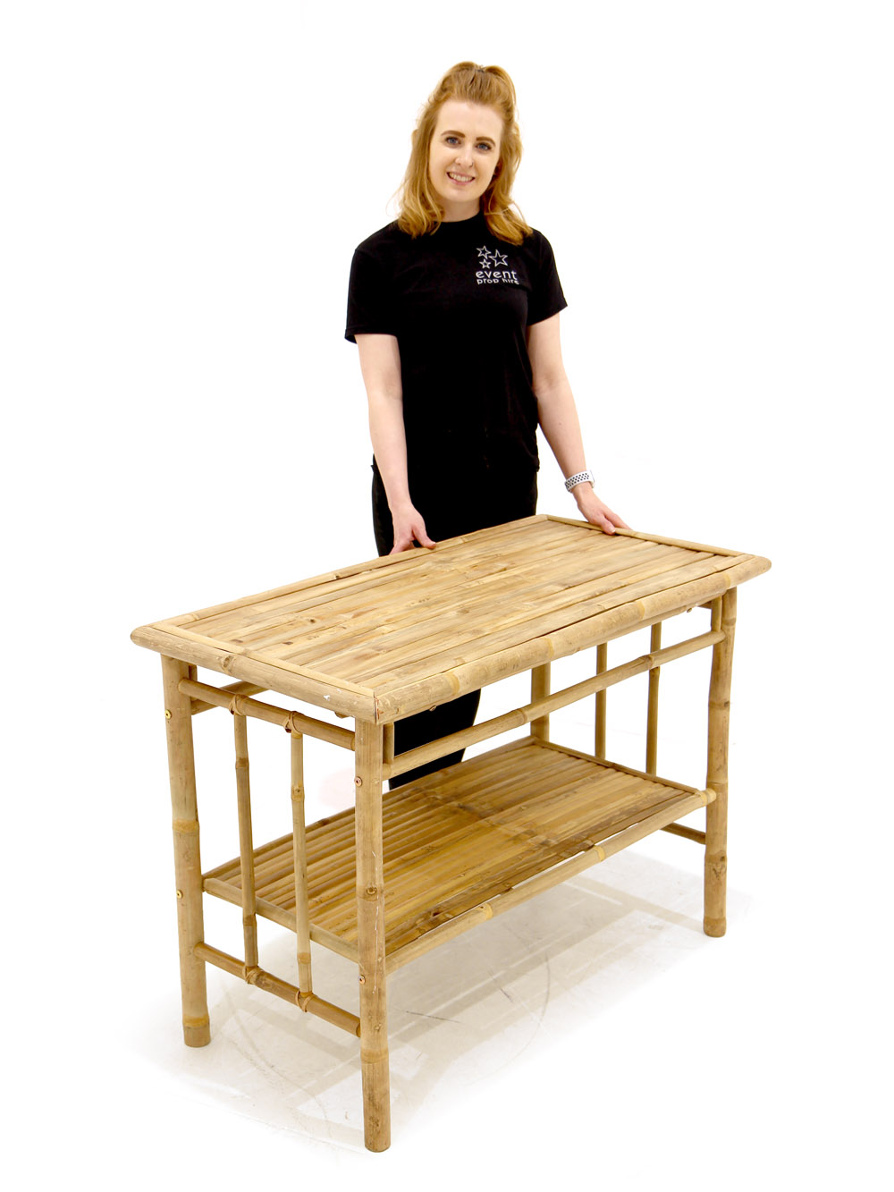 Bamboo Side Table for hire. We’re delighted to offer this lovely Bamboo Side Table to our clients. This will look fantastic in so many different themes, from Caribbean to Oriental, and is a high quality natural bamboo product. The table is complemented by our other stunning bamboo furniture (below) so you can create a lovely relaxed seating area at your event or party.