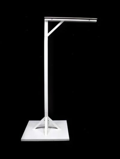 White Banner Stand for hire. Perfect for any Medieval themed event, this banner stand is available as either a ย 3m ย or 2.4m version; simply speak to a member of the sales team to let them know which height you would prefer. We also offer these banner stands in black and brown! We also offer these banner stands in black and brown!
