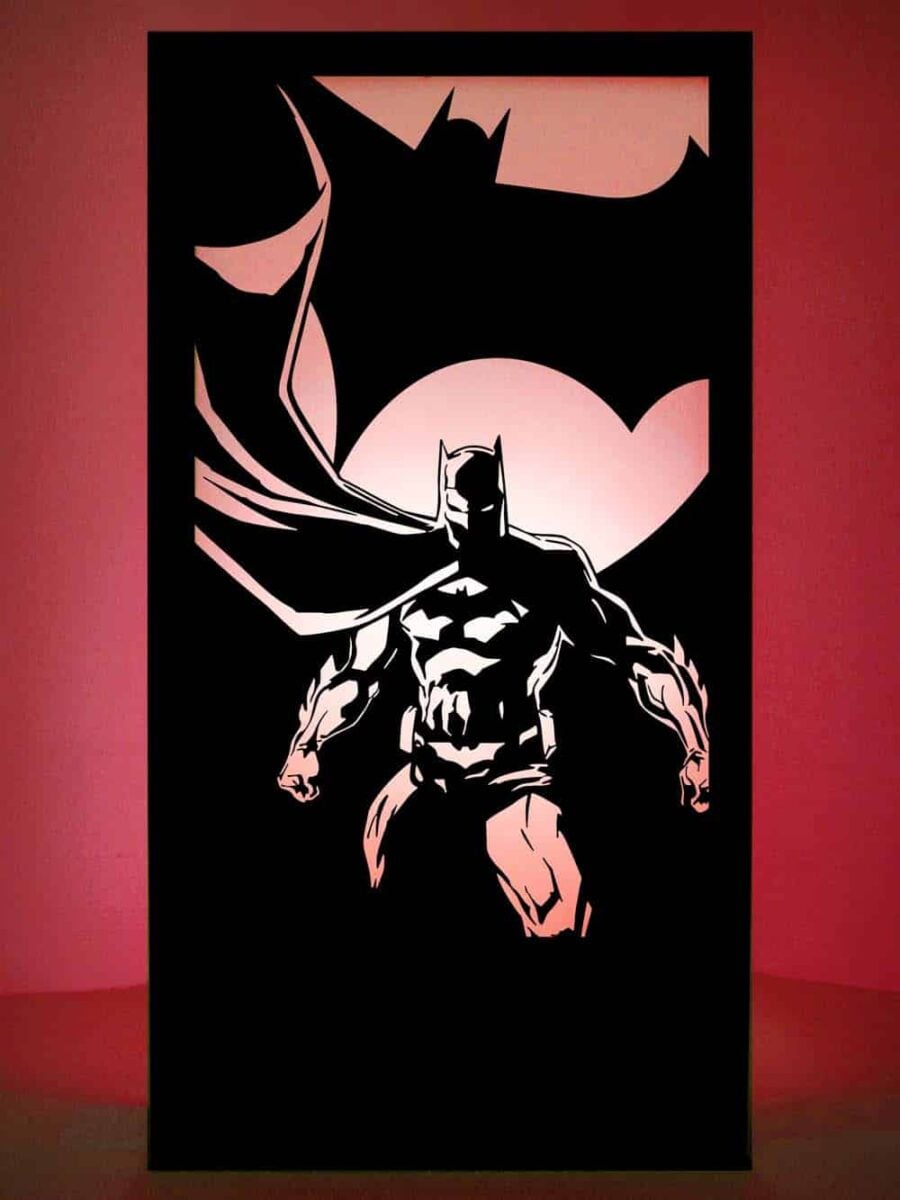 Lit silhouette panel depicting “The Dark knight” Batman! Actual lighting colour supplied may vary from that shown. All Parcan lights have a 1m lead and it is the responsibility of the client to provide extension leads if longer leads are required. Price quoted includes one supplied light.