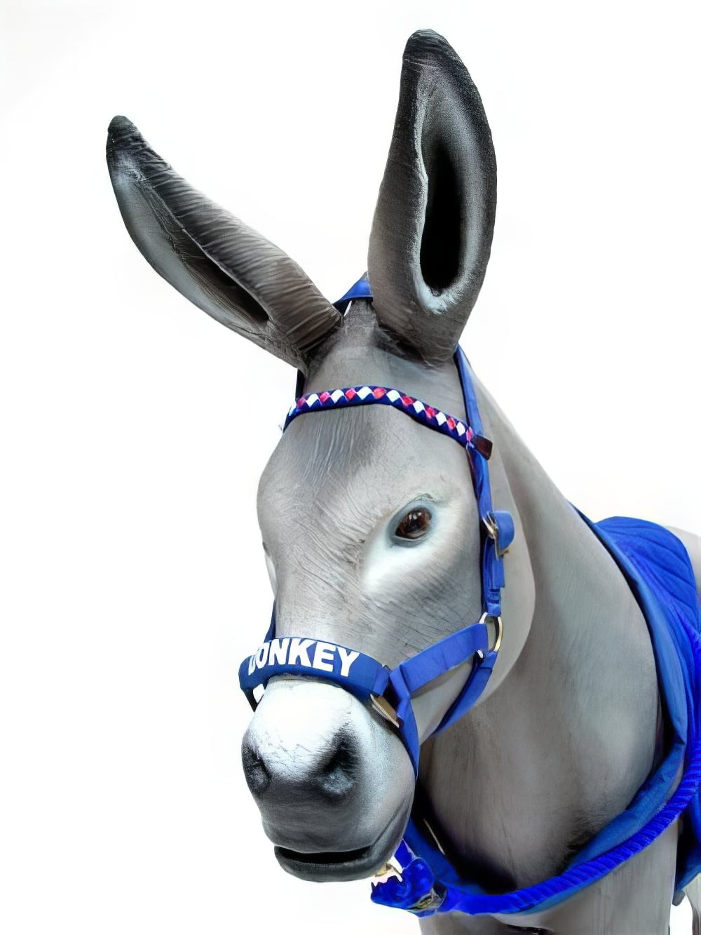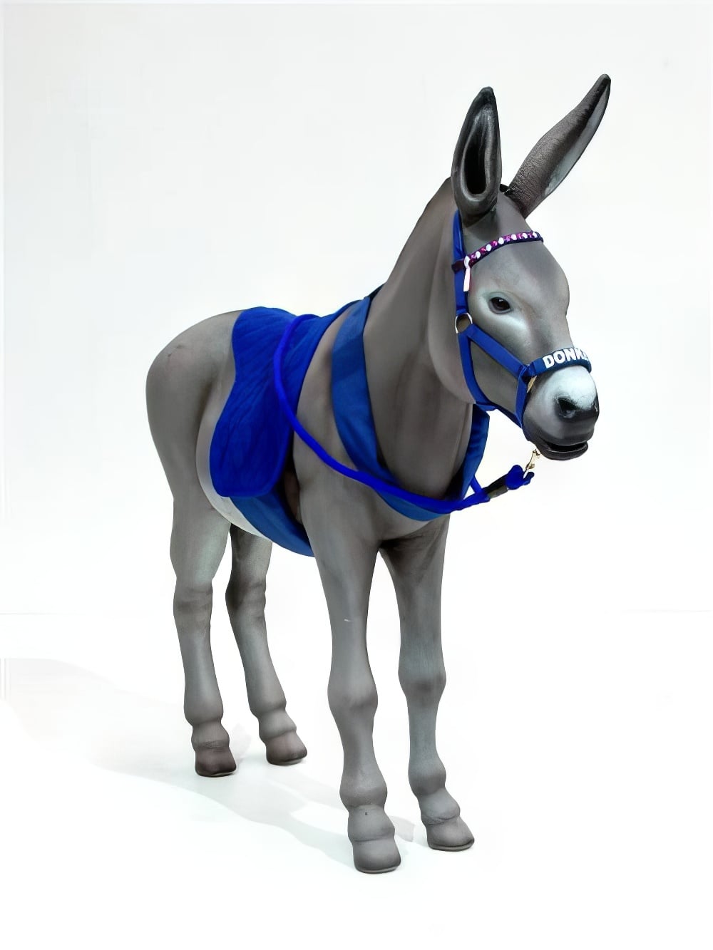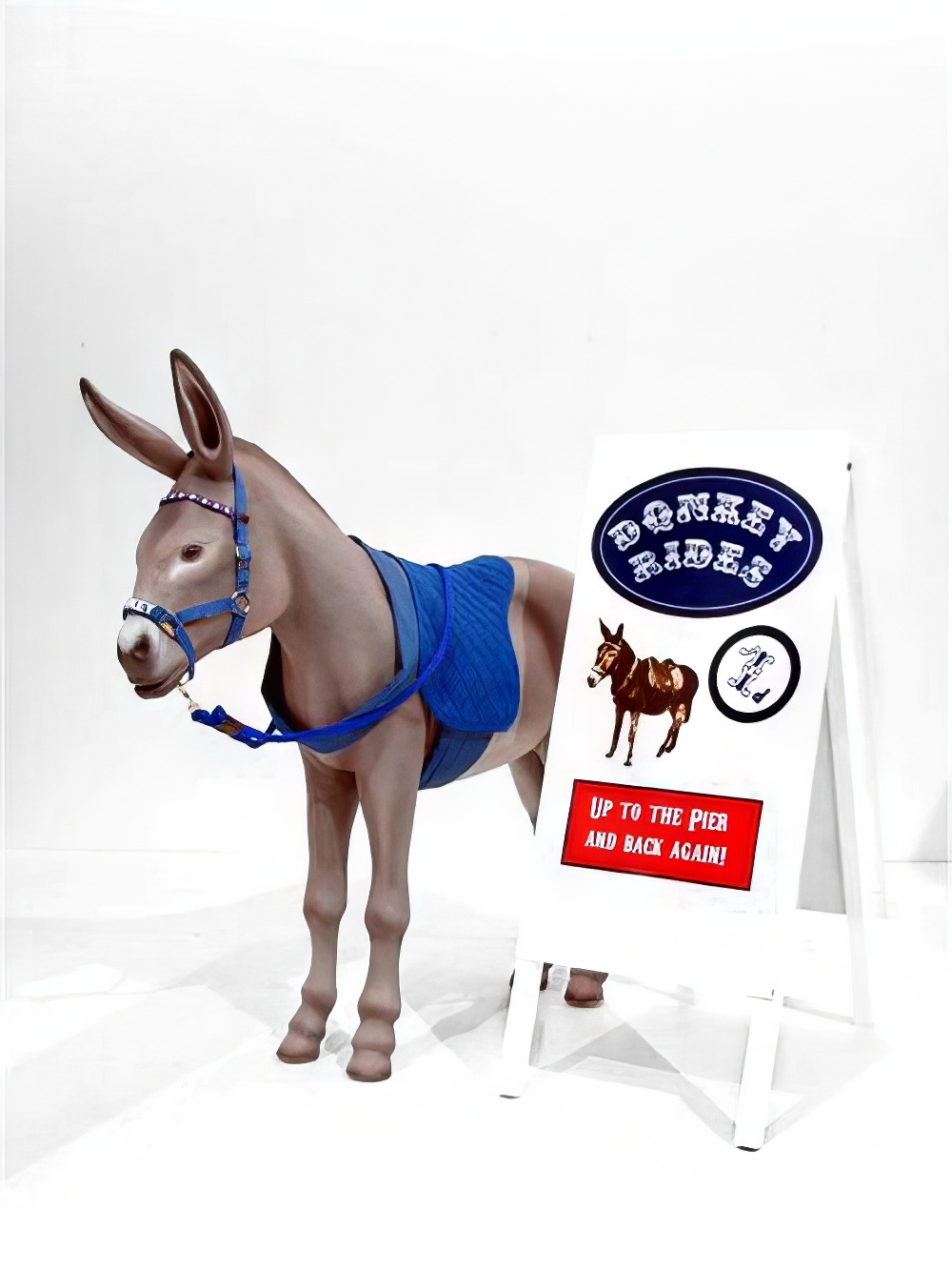 Lifesize donkey to hire. Finished with a beach donkey ride dressing, this is the perfect prop to hire for any seaside themed party night or event.