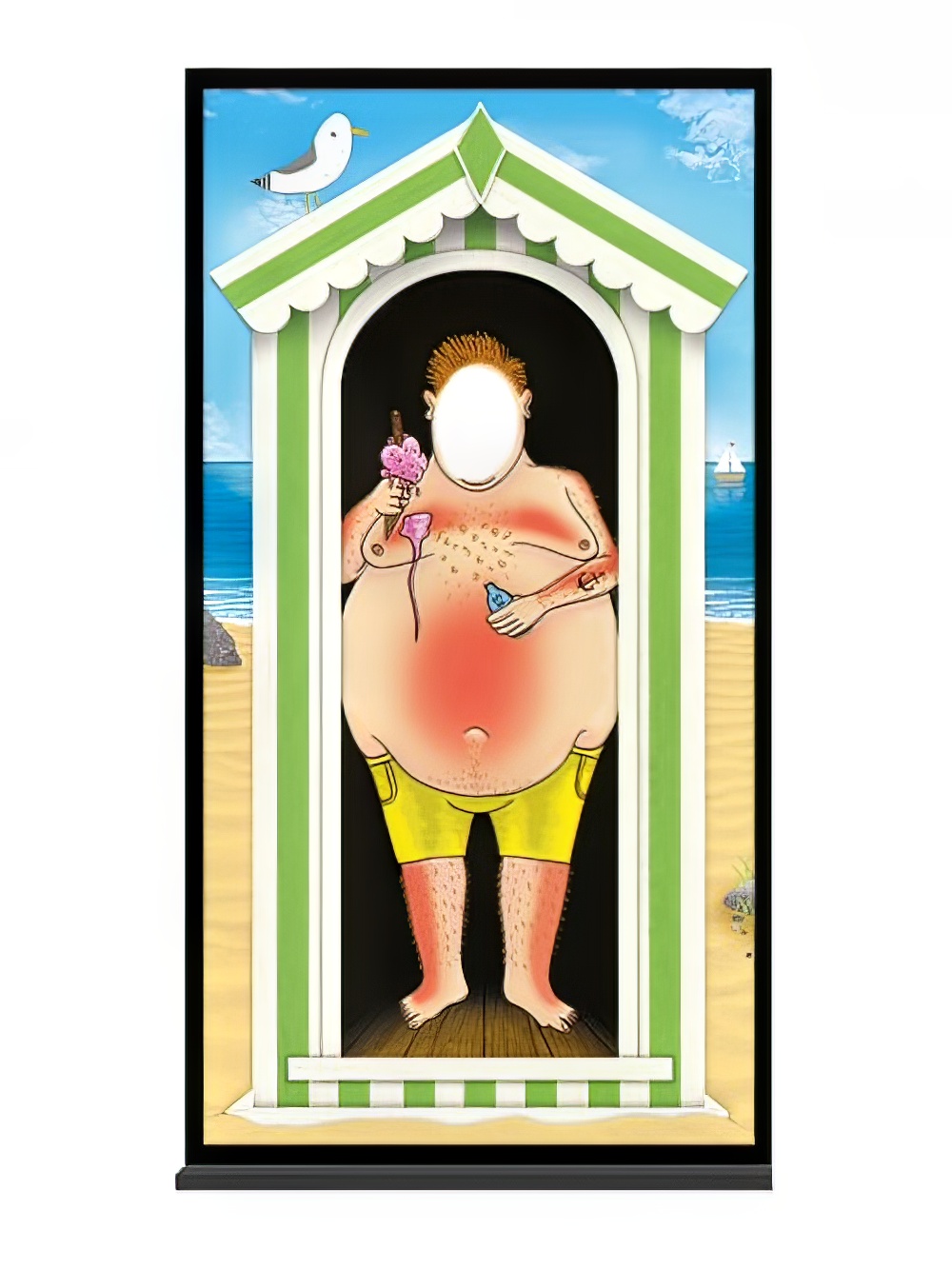 Beach Hut Peep Thru Board to hire. What a great photo opportunity for your guests! This fun beach hut scene will help them to create a fantastic memento of your event. Perfect for any Seaside themed event or party, this prop would provide lots of fun photo opportunities.