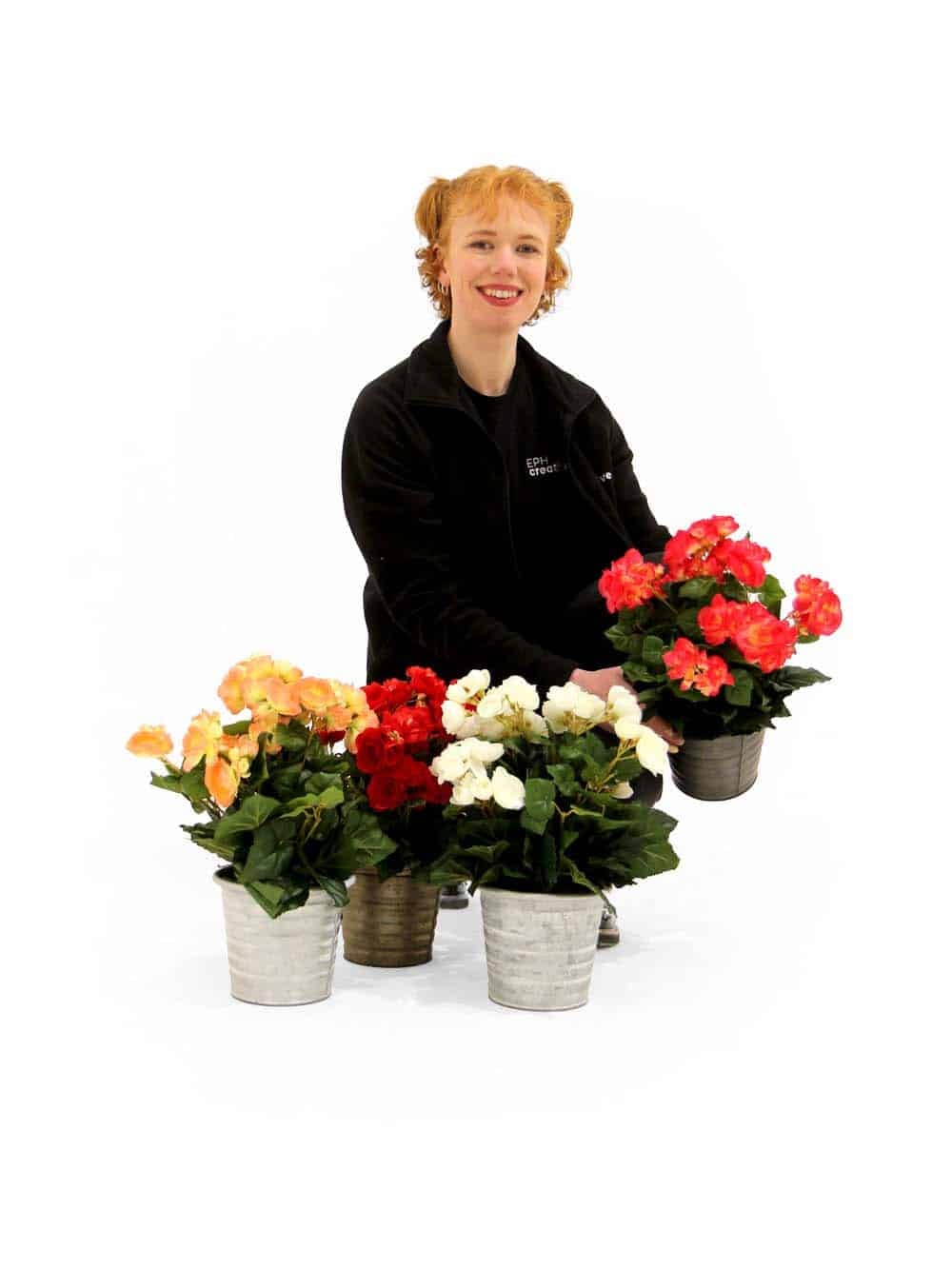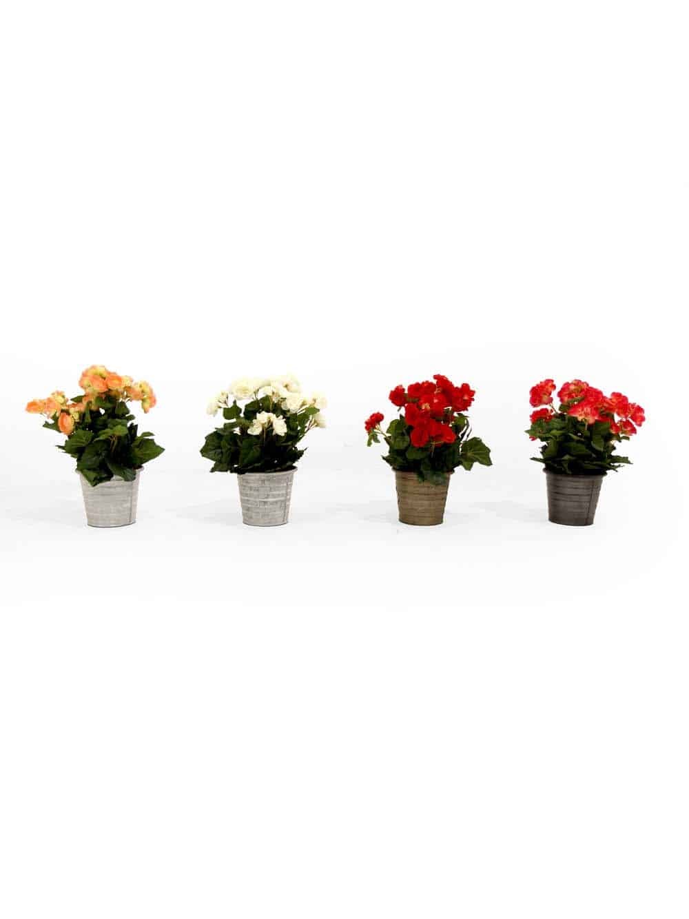 Begonia In Tin – Assorted Colours – Set of 4, for hire. These Artificial Potted Begonia Flowers (Set of 4 Mixed Colours) for hire are the perfect plant dressing for any Summer-themed event.