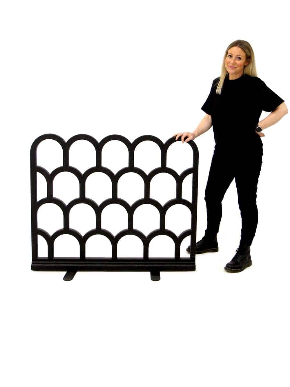 Black Art Deco Fence for hire. Black decorative patterned art deco fence panel for hire.