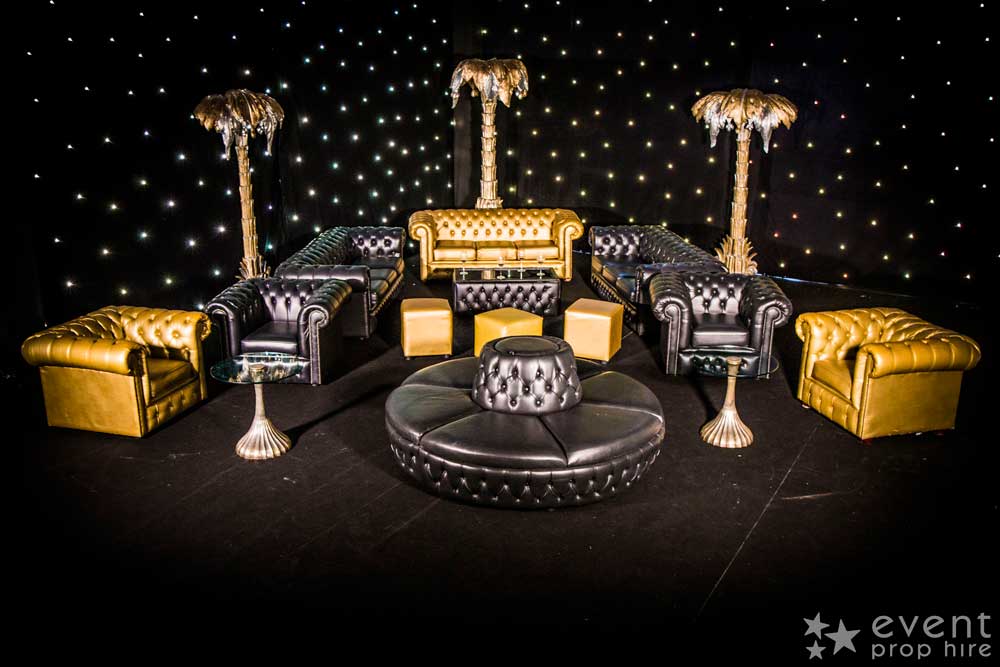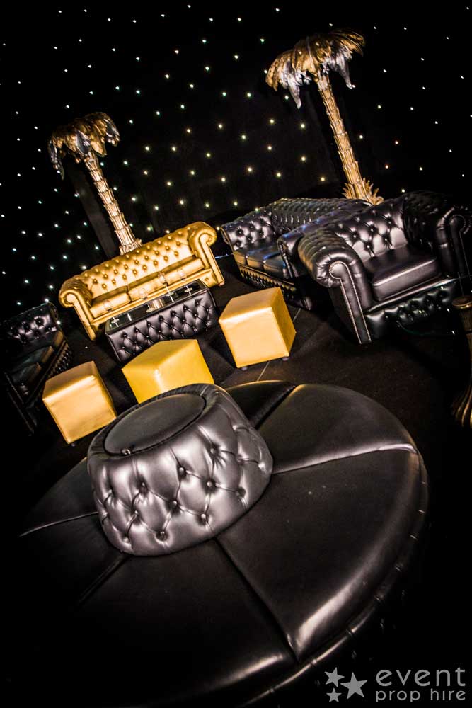 Club Armchair to hire. Upholstered in a black leather effect vinyl, this furniture to hire is perfect for any Gentleman’s club or country mannor theme party event night.