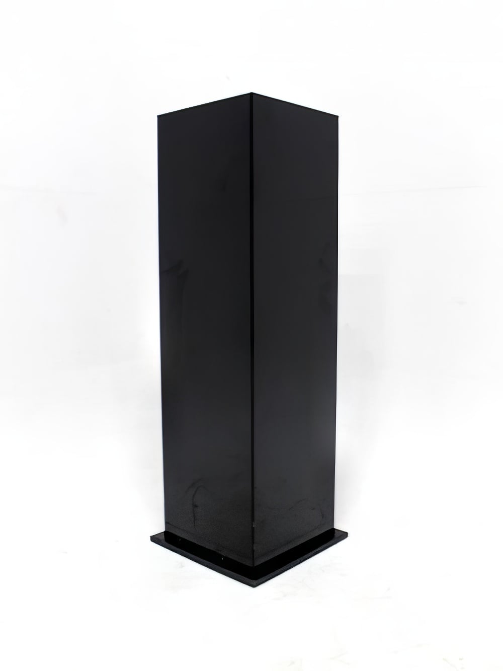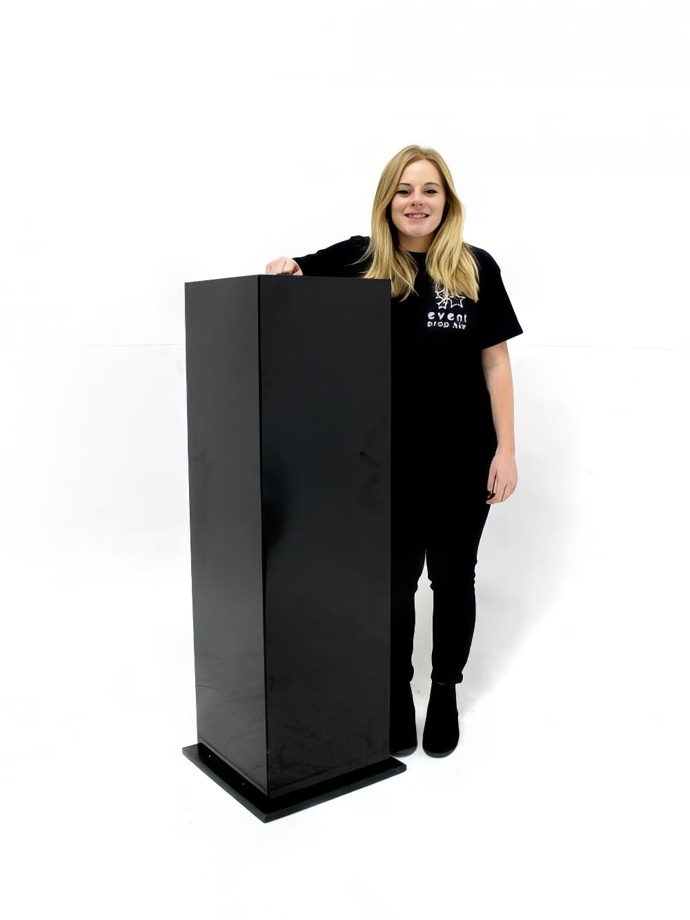 Black Gloss Plinth to hire. This plinth has a lovely gloss black finish, giving it a crisp reflective surface that would look fabulous at your event or party.